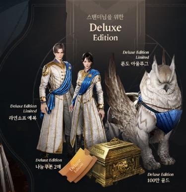 프라시아전기 사전 등록 시 디럭스 에디션을 받을 수 있습니다. 라인 소프 예복, 나눔 쿠폰 2매, 100만 골드, 론도 아울루그 를 사전 보상으로 받을 수 있습니다.