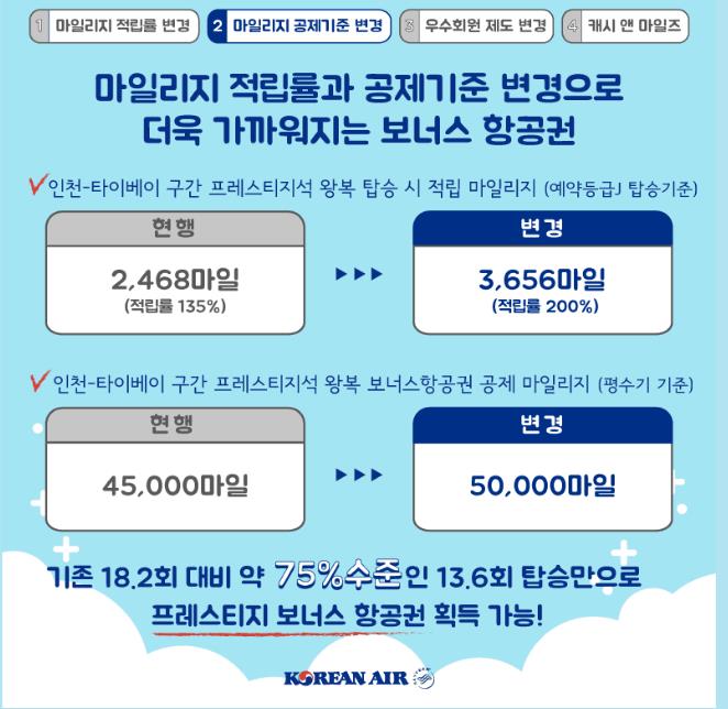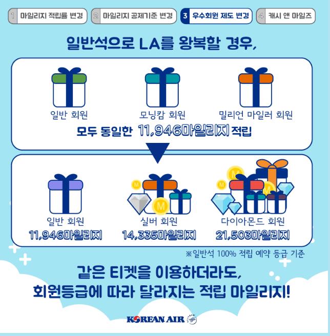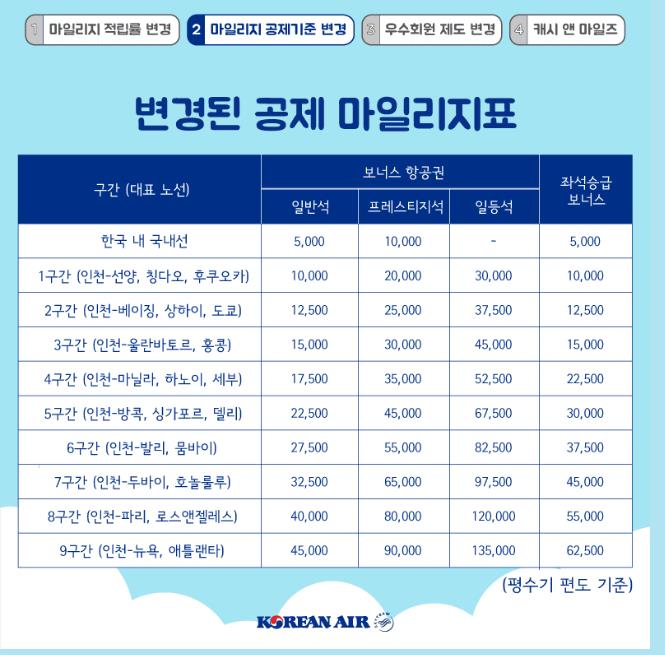 이번 대한항공 마일리지 개편으로 인해 장거리 해외여행을 계획 중인 분들은 잘 확인하시고 여행을 준비하시기 바랍니다.