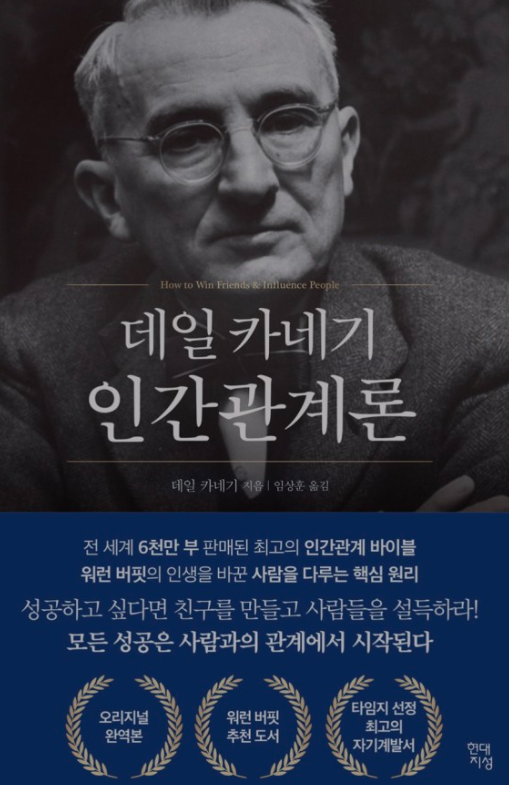 자기계발서에서 오랜 세월 동안 베스트셀러 자리에 위치한 데일리 카네기 인간관계론은 워렌 버핏의 추천서 이기도 하고 인간관계의 바이블로 불리는 책입니다. 인간 경영과 자기 계발 분야로 유명한 데일 카네기의 책으로 전 세계적으로 이상이 판매된 스테디셀러입니다.