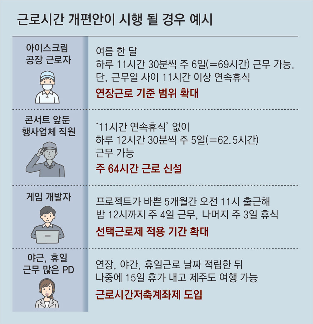 근로 시간 개편안이 시행 될 경우 예시