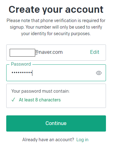 이미 계정이 있으시다면 Log in을 누르시고, 저같이 계정이 없는 분들은 Sign up을 누릅니다.