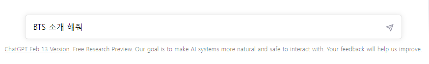 간단하게 BTS 소개를 해달라고 질문을 해 보았는데 이렇게 디테일하게 답변을 받았습니다. 신기할 따름입니다. 한국어로 질문을 입력해도 답변을 해주지만 답변의 정확도는 영어가 훨씬 뛰어납니다. 또한 답변이 영어에서 한국어로 번역되어 나오기 때문에 다소 시간이 걸리기도 합니다. 하지만 못 기다릴 정도의 오래 걸리는 것은 아니기 때문에 사용하는데 특별한 이슈는 없었습니다. 다만 웹상의 정보를 기반으로 학습하였기 때문에 학습된 내용이 잘못된 경우도 출력되기도 합니다.