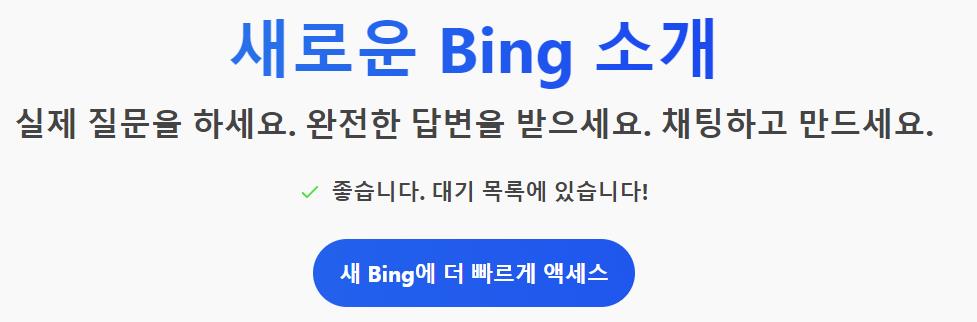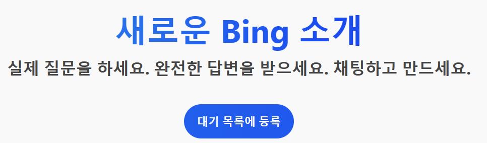 빙(Bing)을 사용하려면 대기 리스트에 이름을 올려야 합니다. 이를 사용하기 위해 빙(Bing)에 로그인 후 신청하고 크롬 확장 프로그램에 빙을 설치해야 합니다.